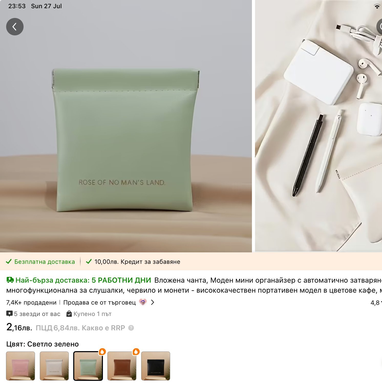 В момента и при мен само оферта за пакет купони излиза. Днес върнах сандали, и обувки за младежа- малки. Между двата чифта сандали от един търговец и модел , сантиметър разлика в ходилото, едните малки другите хлопат. А според описанието не бива да е така.