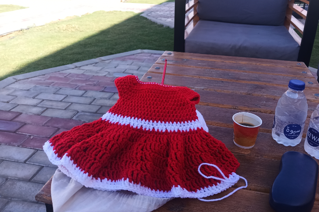 Но за коледните снимки става. Като я довърша ще потърся и обувчици и шапка.