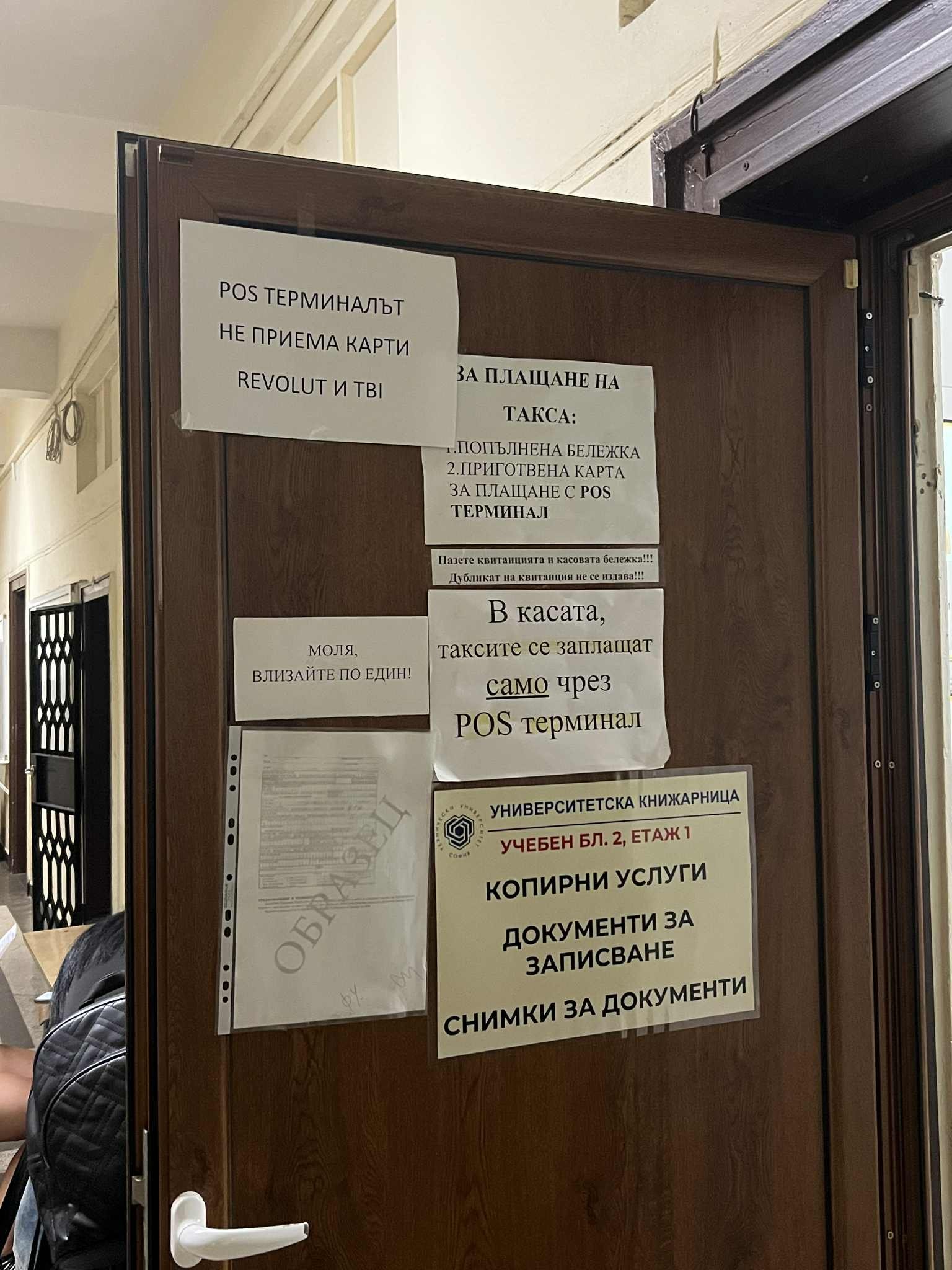 Днес сина ми се записа . Казали са му първо през книжарницата, за да си вземе комплект за записване - студентска книжка + лична карта. След това плащането и накрая записването. Казах му да си вземе уверение, че е записан, за да си направи и карта за градски транспорт. Питали са го и дали иска стикер за отстъпка в столовата. Взел си е и стикер и уверението за картата.