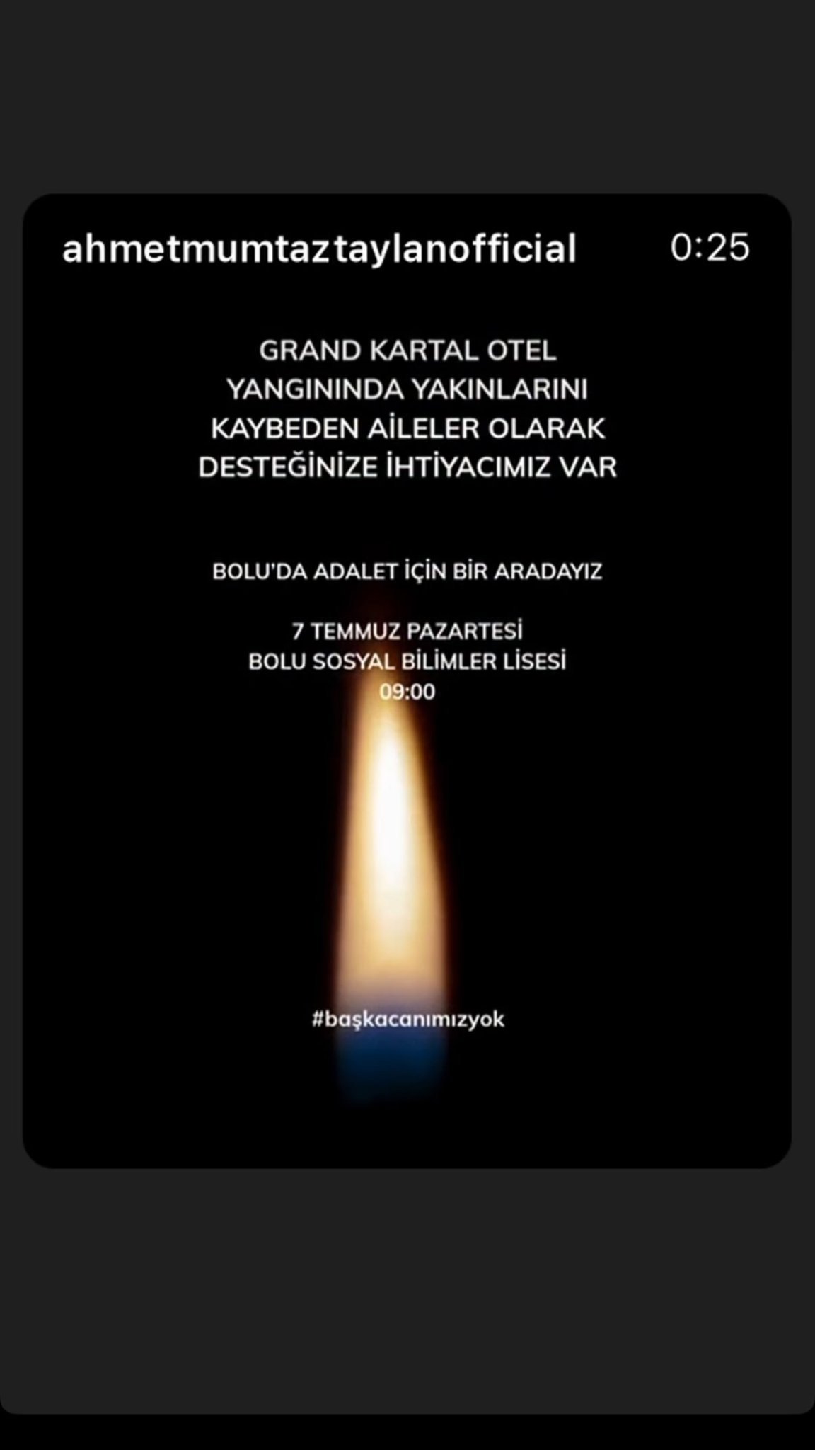 Туба препубликува в ИС публикация на Ахмет Мюмтаз Тайлан за подкрепа на близките на загиналите в пожара в хотел Grand Kartal.