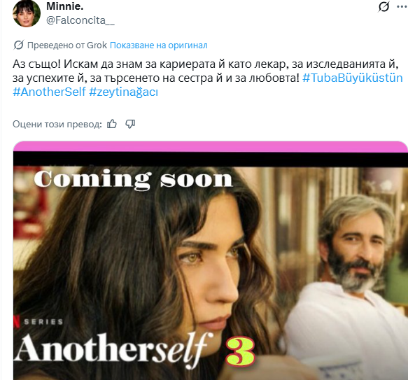 И аз не искам в този нов  сериал да участва Туба. Дано са само фенски мечти.