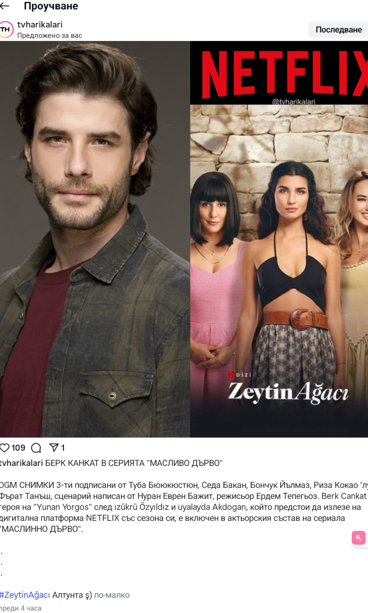 Берк Джанкат се присъединява към сериала на Netflix #OliveTree! Той ще си партнира със Седа Бакан!