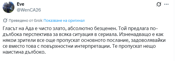 Лина интересни размисли си сложила. Надяваме се трети сезон да е топ, но ще разберем чааак догодина по това време.