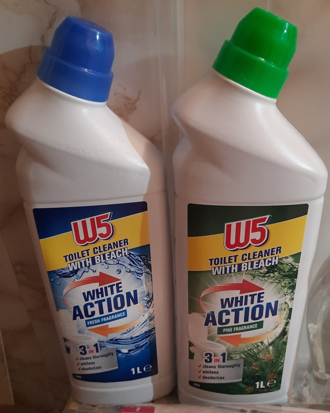 Аз използвам Active Power, само че в бяла бутилка със синя капачка, и много е добър. +1 за W5. Според мен няма никаква разлика с Domestos.