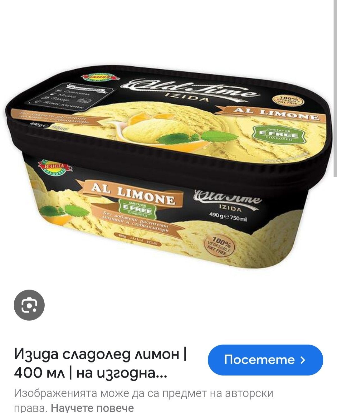 На Изида лимоновият сладолед в бяла кутия също е много хубав.
