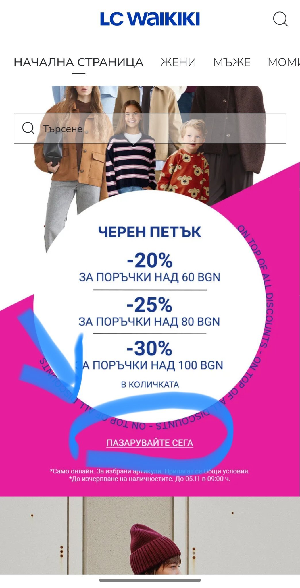 Отстъпките важат за определени артикули, до които се стига от банер на първата страница: