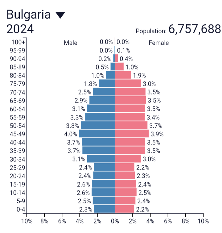 Старите са два пъти повече от младите, ето пирамидата на населението: