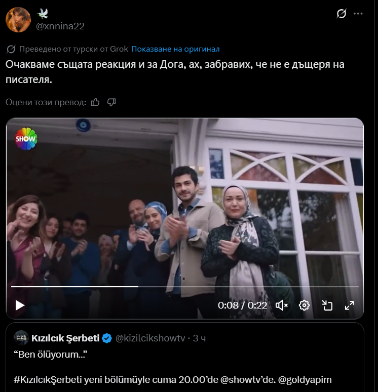 Аз лично не го приемам. Аз се чудя как още се гледа. Днес и Улаш почна направо да го финализират вече. Да стигнат дъното, но чичко Фарук си търси парите, но ще съжалява че се води по акъла на тия двете сценариски.