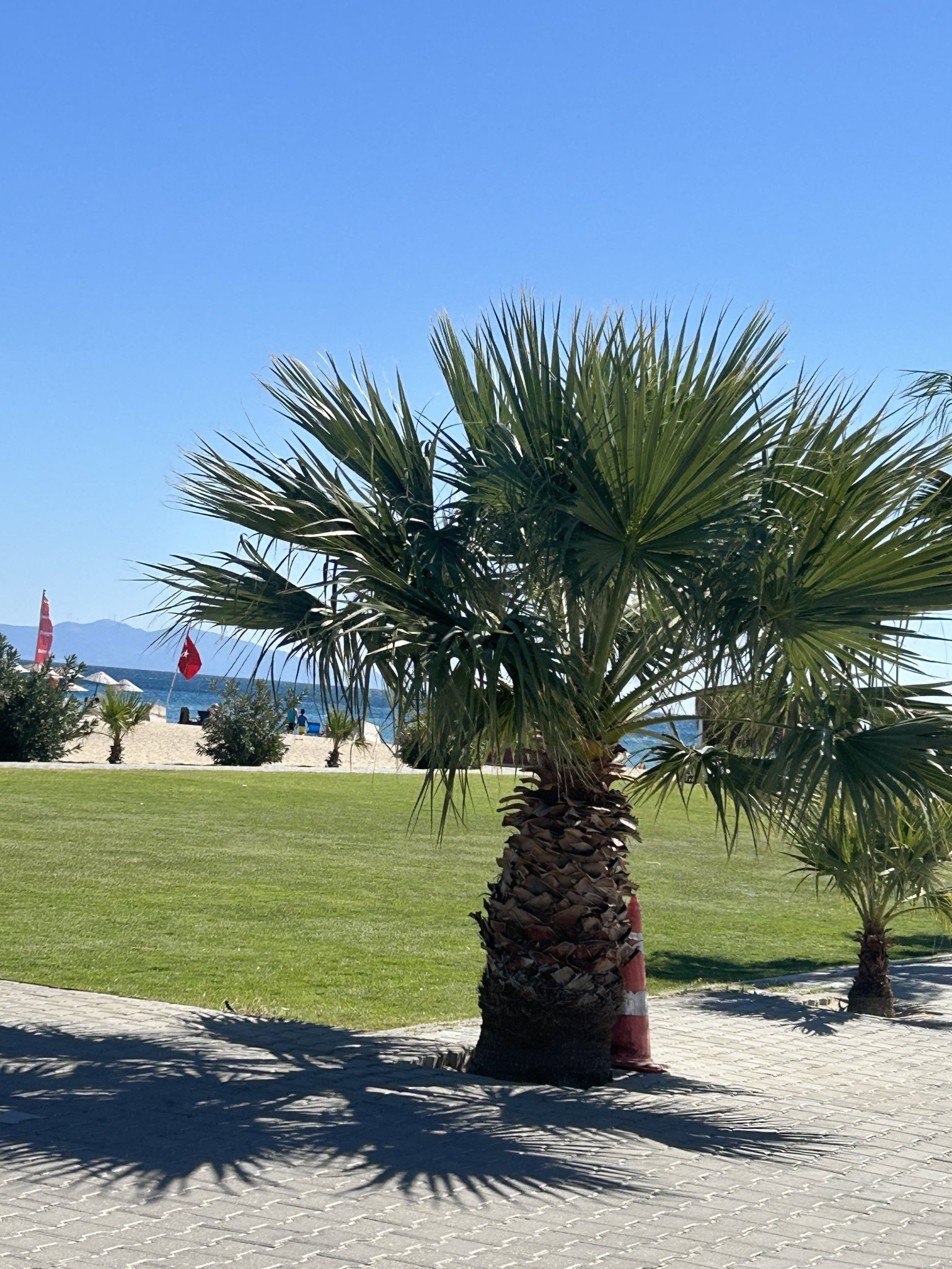 Тази сутрин слънчево, но пак ветровито. Към 10 часа ще проверим какъв ще е флагът на морето. Нищо чудно да не разрешават влизане. Имаме седмица време - дано се топнем поне веднъж.