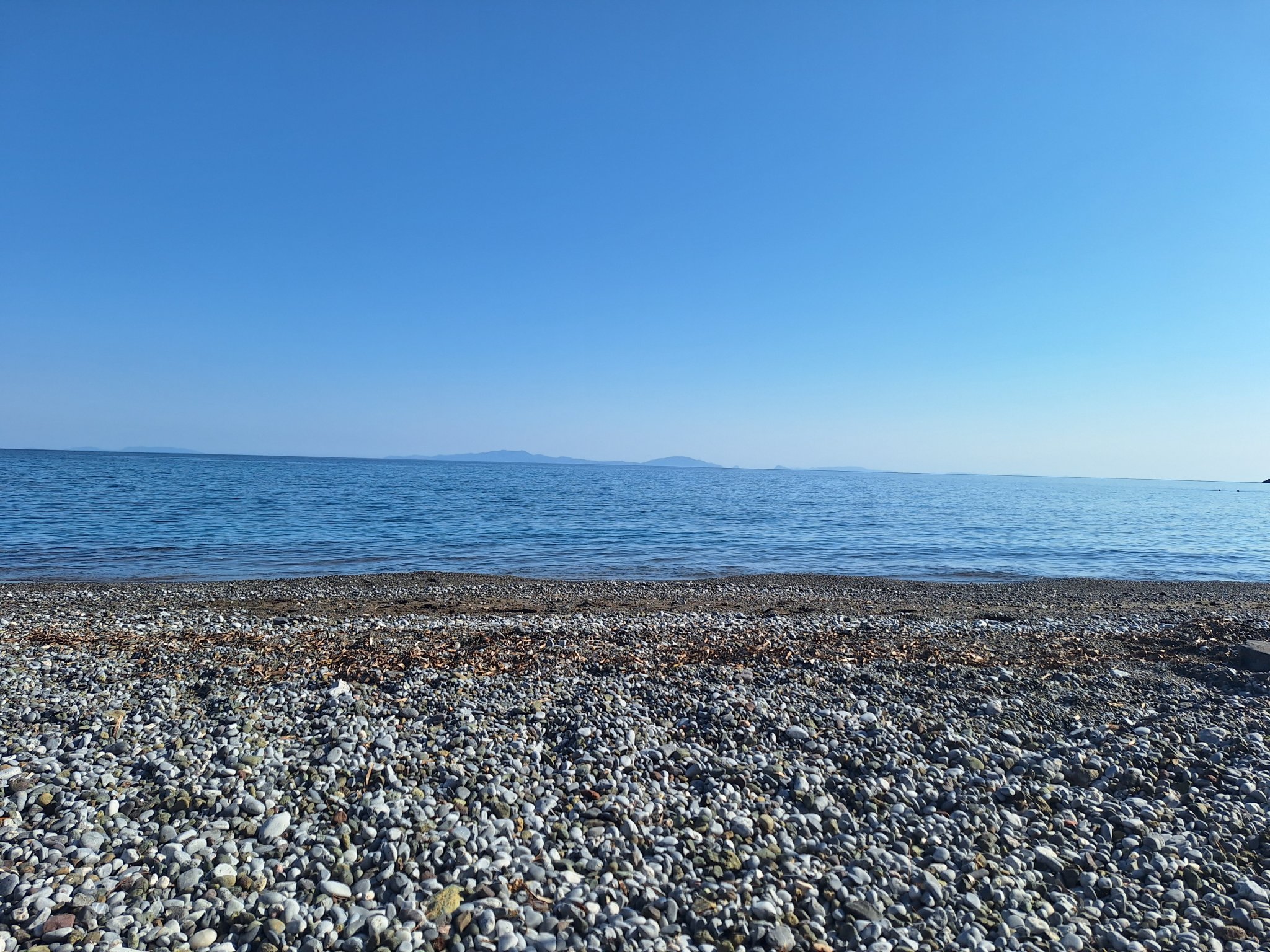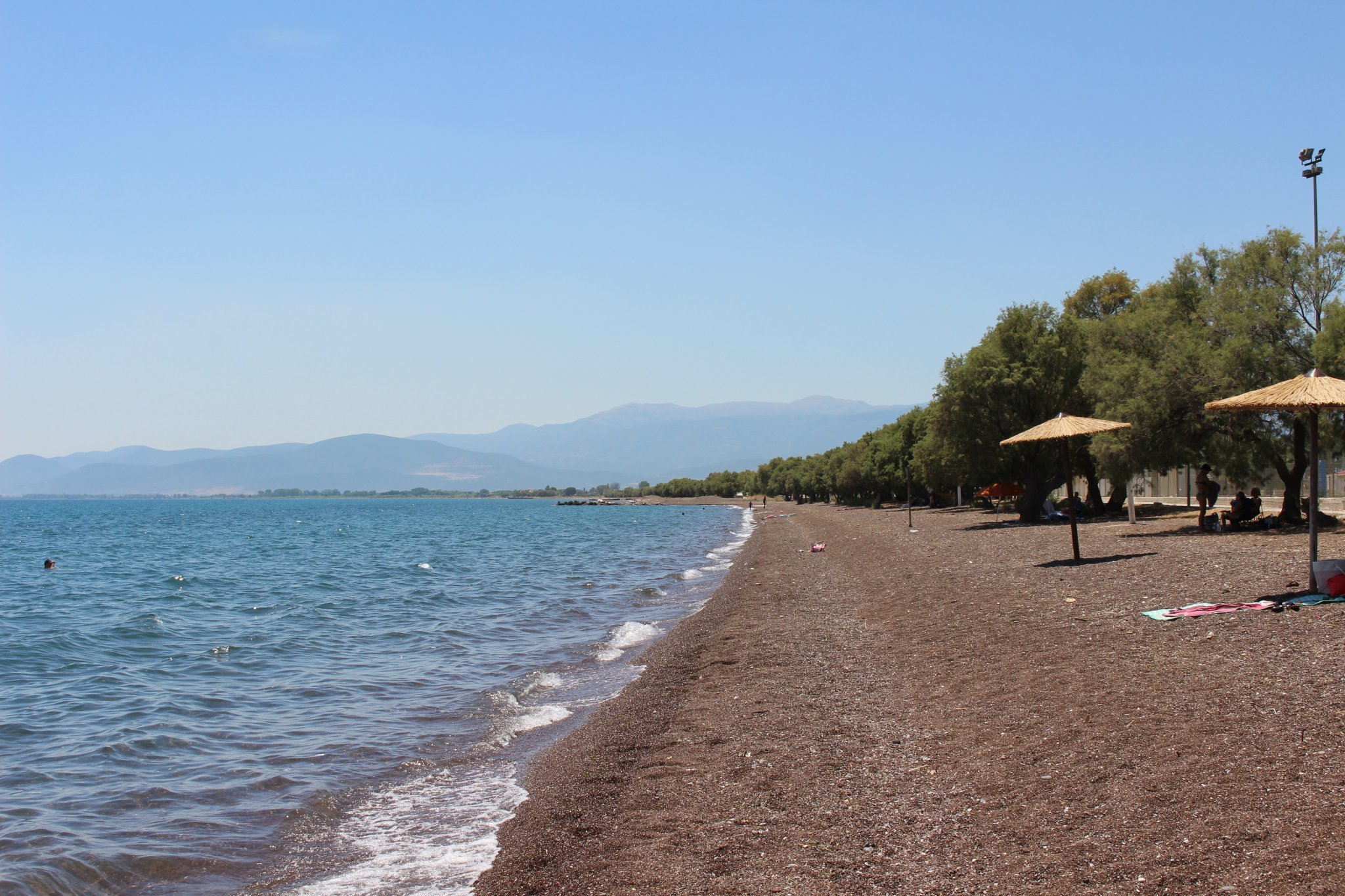 Плажът е интересен - с малки керемидени и сиви обли камъчета, които му придават кафеникав нюанс. Има всички удобства - съблекални, душове, естествена сянка от дървета, бийч барове, няколко безплатни общински чадъра, таверни на самия плаж и места за паркиране. За съжаление по едно време морското течение довлече боклуци, но се надявам, че е инцидентно.