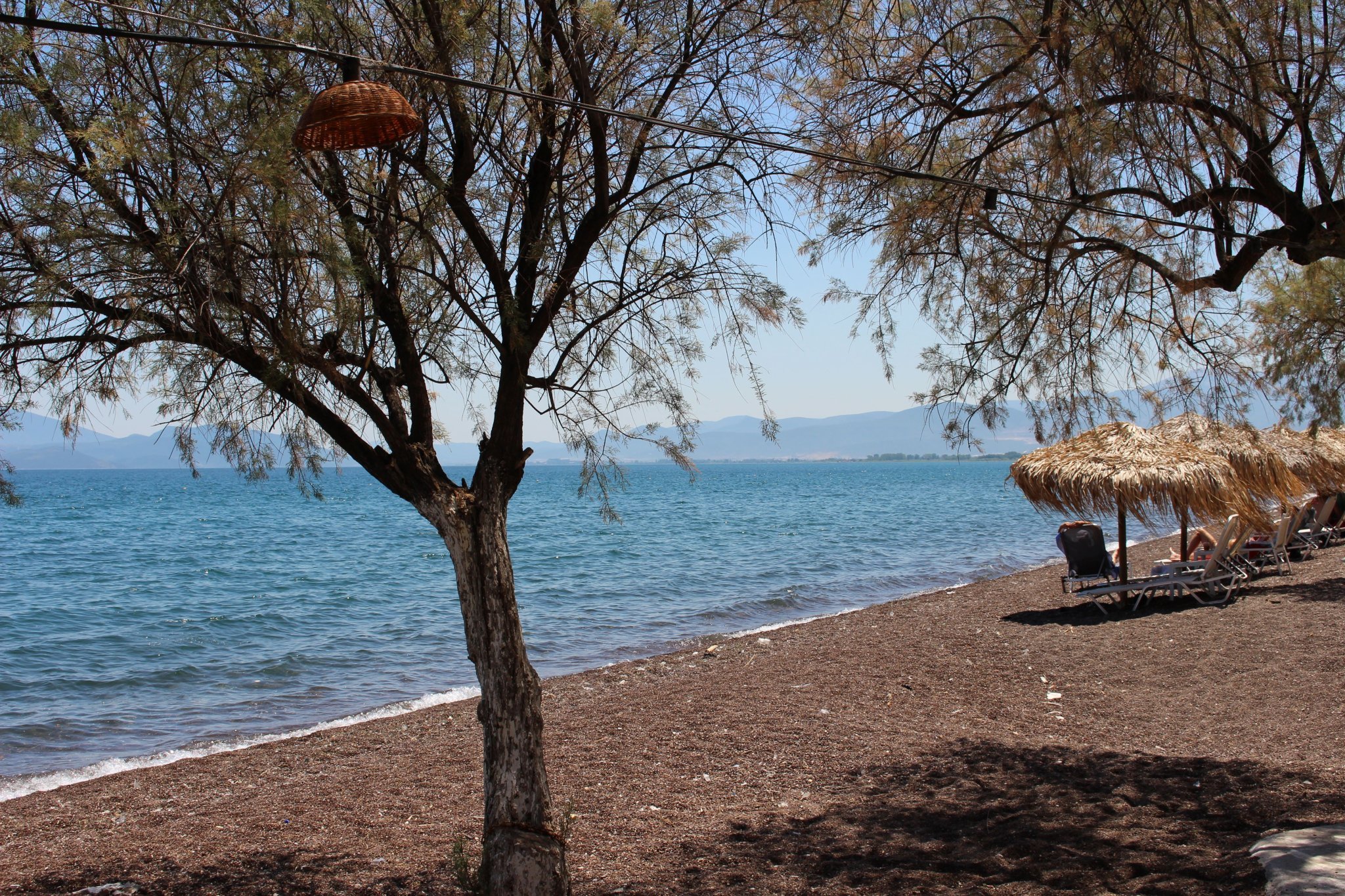 Преди тръгване хапнахме лек обяд в една от плажните таверни. Въпреки 39-градусовата жега там беше приятно прохладно от дебелата сянка и морския бриз. Добре че предния ден не се отказахме от отбивката заради прогнозата.
