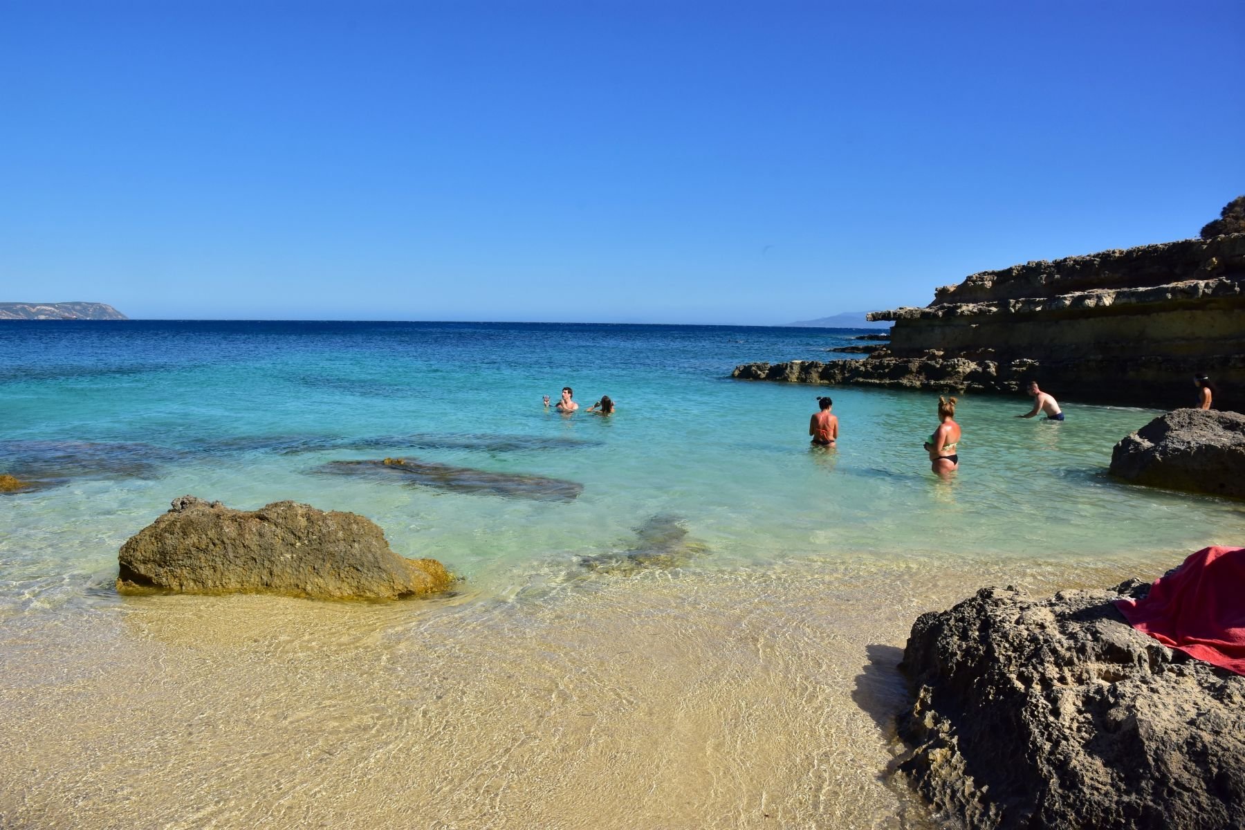Също и "скритата" Песада - малък пясъчен залив сред скали, до който се стига по стъпала и 10 минути ходене по остри камъни от видимата Песада. Може да се извърви и с джапанки, но НЕ го препоръчвам. Поне акваобувки.