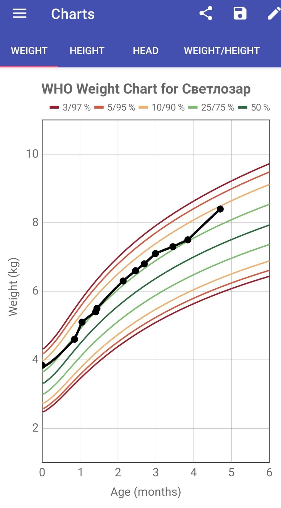 Иначе да кажа, че според мен си върви дребничка 5.800 на последният преглед, който беше на 07.08.. На 4 месеца и половина. Лекарката все ми казва, че е дебела и че много яде. Реално малката има само 4 хранения по 150 и сега като заспива и даваме по 180мл. ( това е за водата без ам) . Но тя си е спокойна и не се буди… спи си. Затова и не я насилвам с повече. Като се роди беше 2,830.