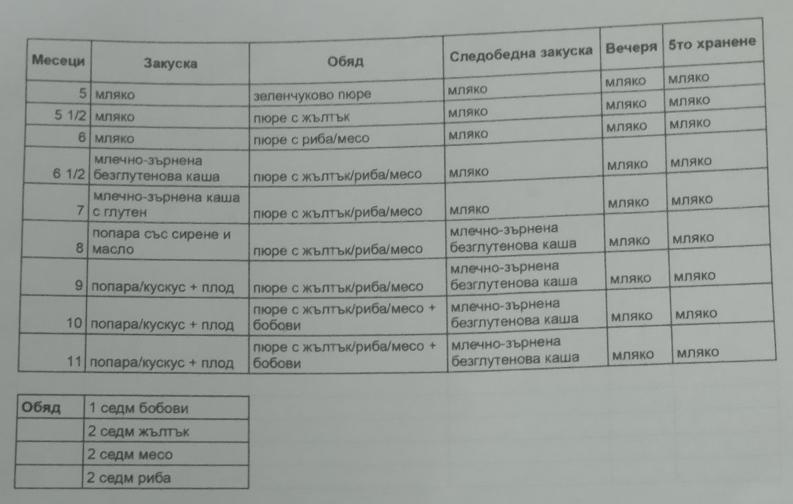Качила съм линк към схемата на Хип и снимки от лекцията на д-р Владимирова 🤗 Ще направя комбинация от двете, няма как да се водя по Владимирова, защото прекалено късно въвежда кашите и плодовете, а и ще започна захранването малко преди навършване на 5-тия месец. Като цяло се припокриват, харесала съм си рецептите за паста, попара и червена леща 🤗