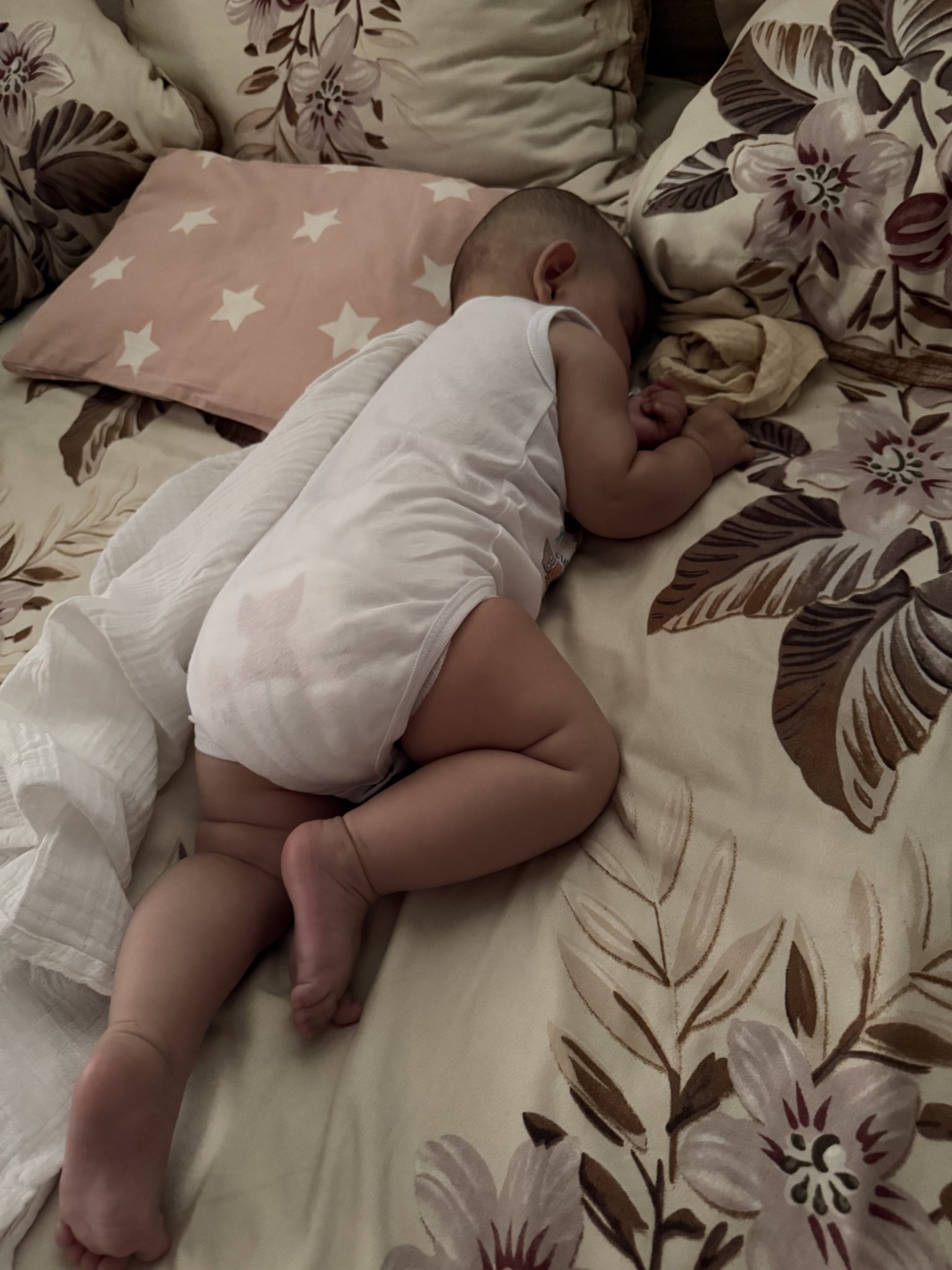 Явно им е период за спане по корем и моят така спи.. резултата от цялото въртене е редовно пропуснали памперси…😩
