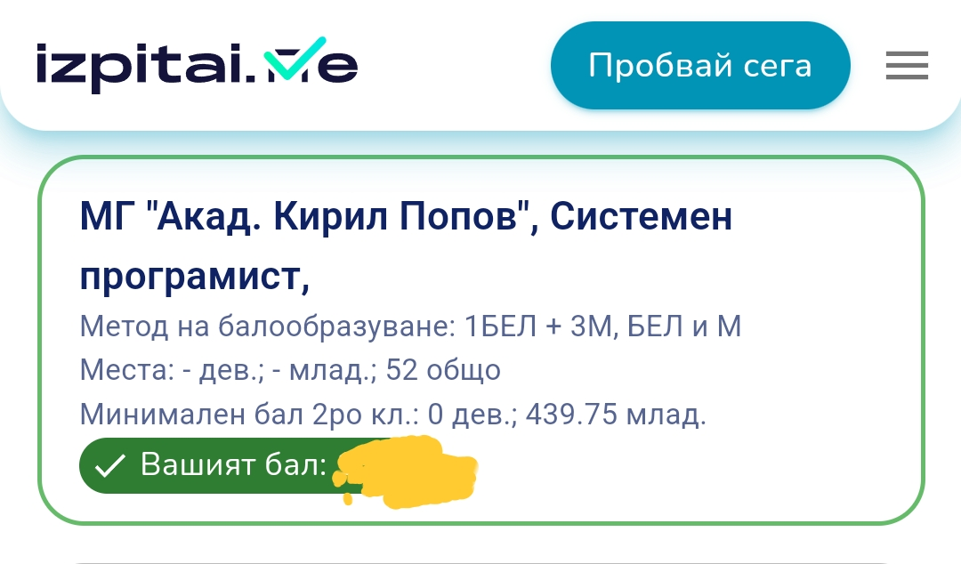 Долче...при мен няма грешки с бала. Отделно го бях гледала и записала. Съвпада минималният..с който е влизано на второ 2024г.