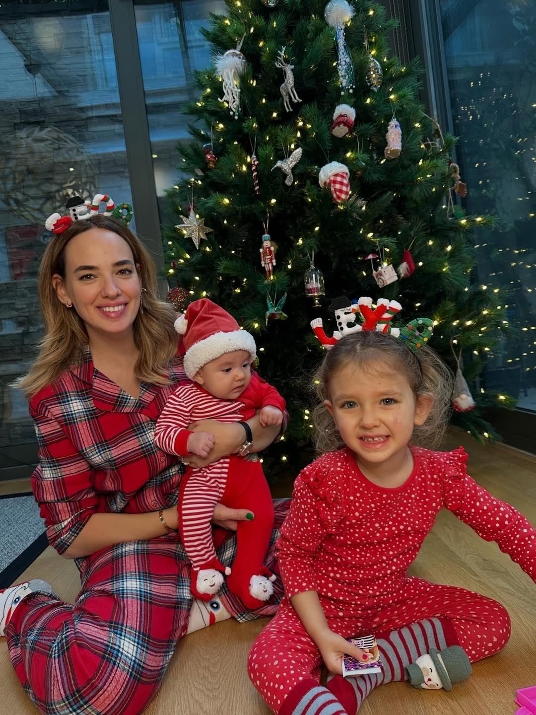 Седа Бакан пред елхата с едното си дете.