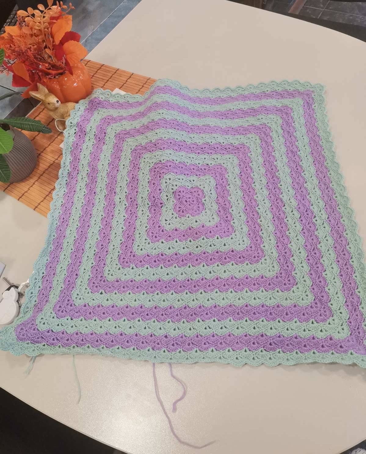 Плета последния ред на това одеалце . Истината е , че ми извади душата , но съм упорита - почивам и почвам . Ще стане 80/80 . Утре ще го изпера и опаковам и ще го подаря ,че бебче другия месец ще се появи . Да се надявам да си го използват .