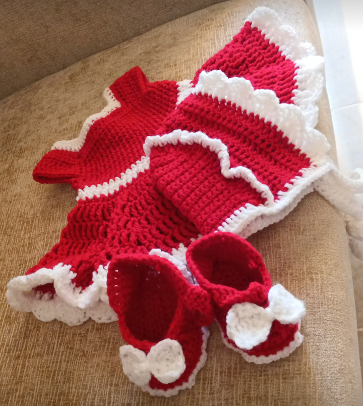 но мисля да изкарам един бял ред къдрички на шапката отпред и на рокличката. и да разкарам рачешкото от обувките и шапката.