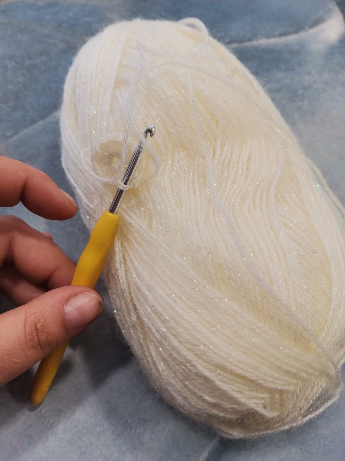 Конецът, който се вижда е преждата. По-тъничка и от нашенския пан. Става много меко и пухкаво. Харесва ми.