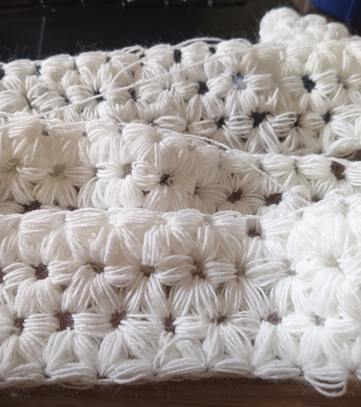 пробвах жилетка с някаква останала гранка пуфи. ще коригирам броя на бримките, ще направя снимки и ще пусна тук.