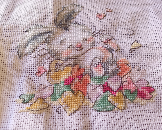 Направих жилетката до някъде, а половинът се смее, че плета палто за котка. Започнах го от врата на 5-1-7-1-5 и на седмия ред засякох ръкавите. Резултатът е не лош.  Но много лесно се изпускат бримки и се бъркат бройките.