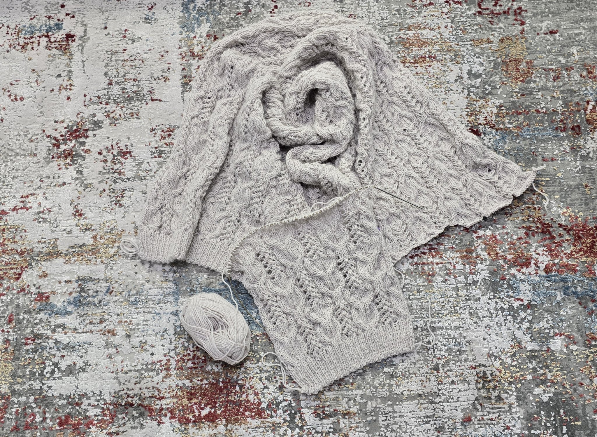 Много си бърза! Гръбчето е готово, ръкавът наполовина ... Другата седмица ще си с нова жилетка