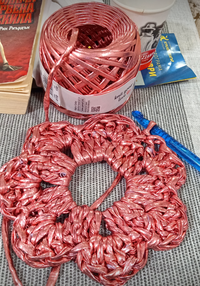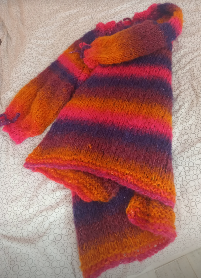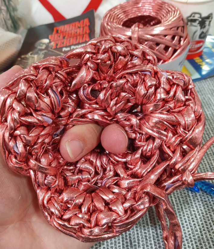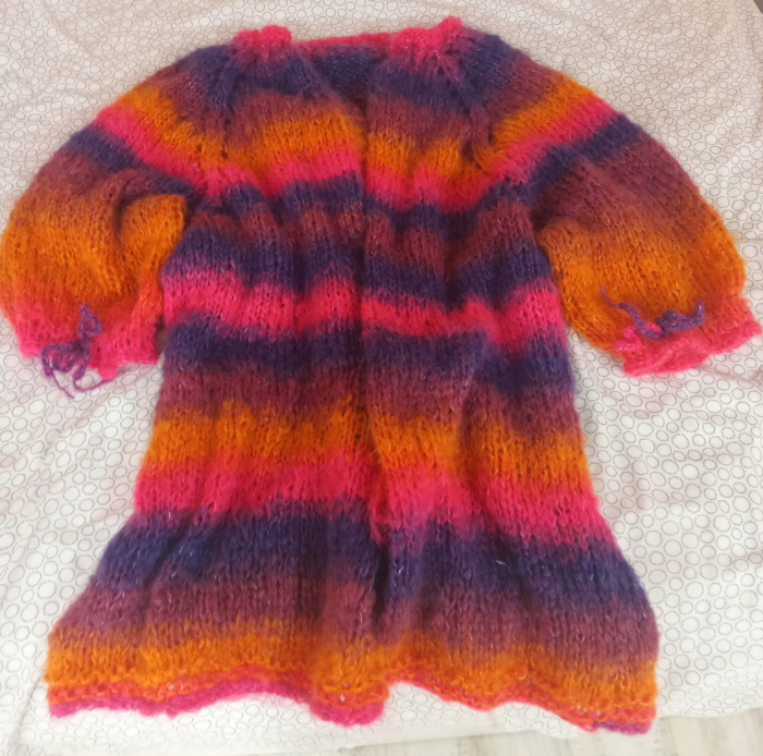 Щерката ми подметна прежда от абонамента. Не знаела какво да я прави, сякаш иска жилетка, но ще стигне ли... Направих проба с тънки игли, изглеждала степана, направих с най-дебелите и се хареса.
