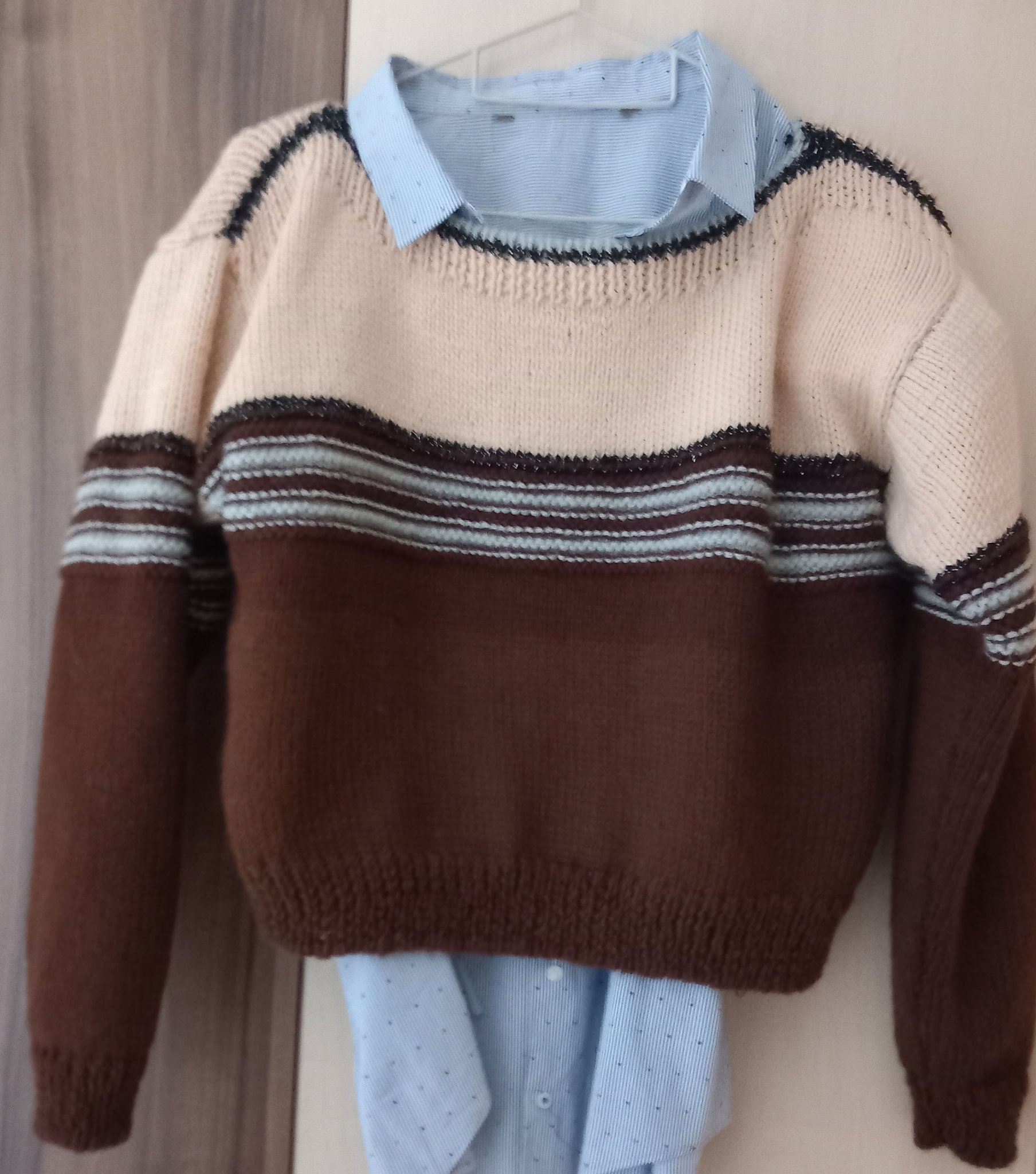 Винаги първо плета ръкавите, а после, колкото прежда имам. Е, ако е прекалено много преждата, каквато дължина искам. Но винаги оставям малко конец за ремонти, ако се наложи.
