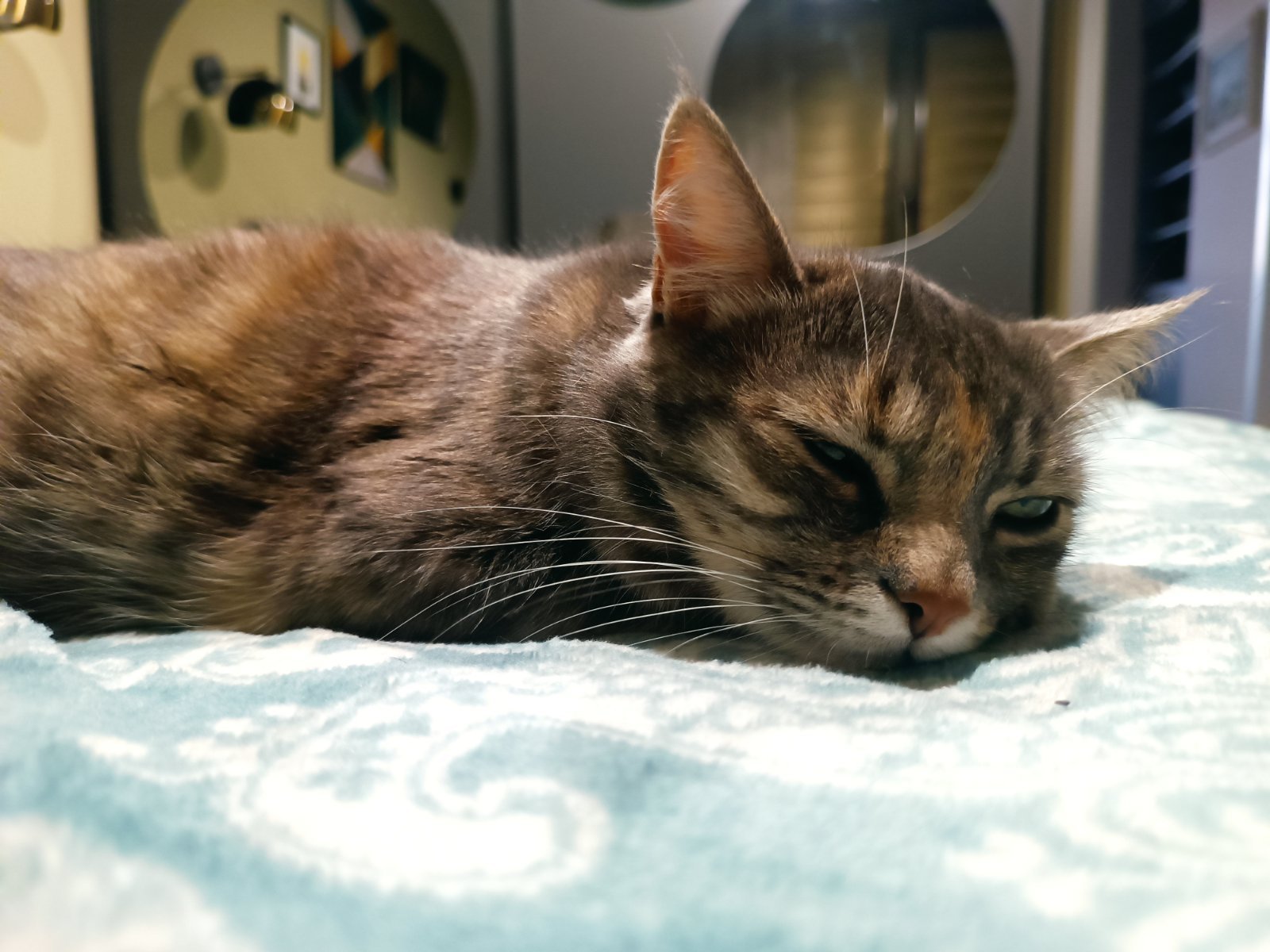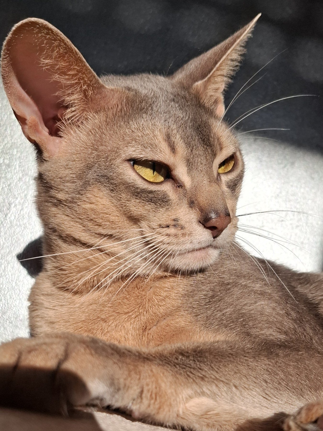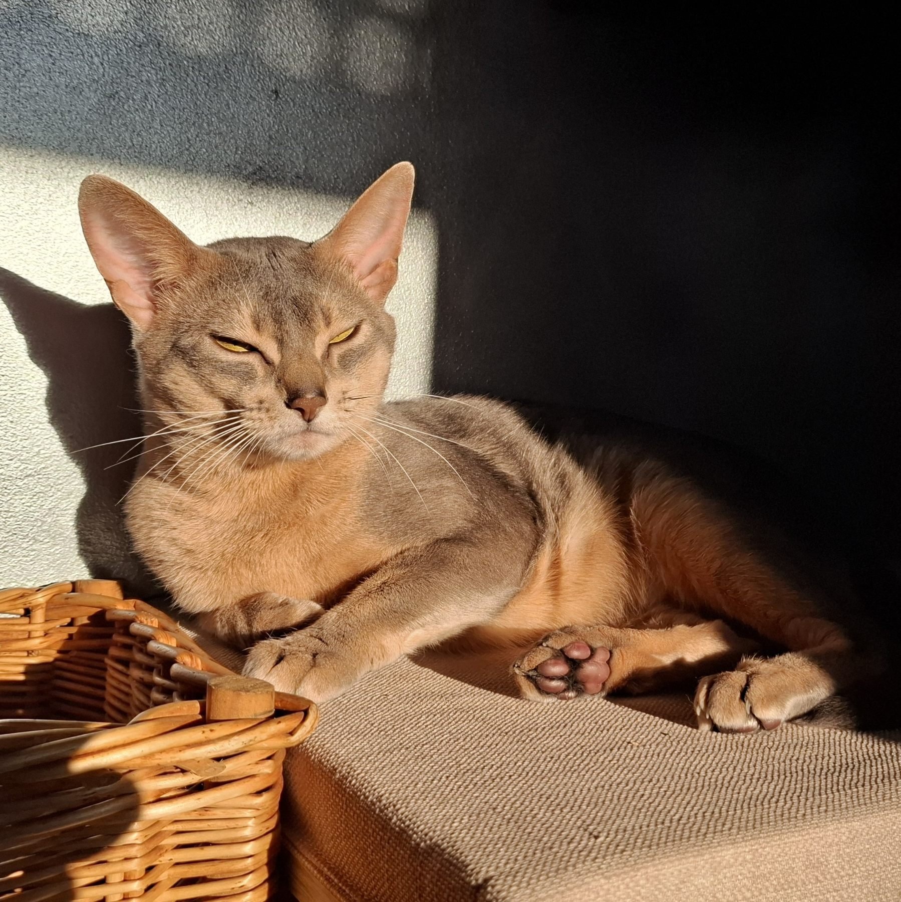 Лео е добре, яде, гали се, мърка и се закача с Чери. Опашката не виси както преди, леко е извита в дъга. Но и не я вири, нито мърда. Понякога се опитва са я вдигне и се извива до гърба, но пак си виси 🙄  От няколко дни си седи на дупето. Ще дам още време и се консултирам с вета .