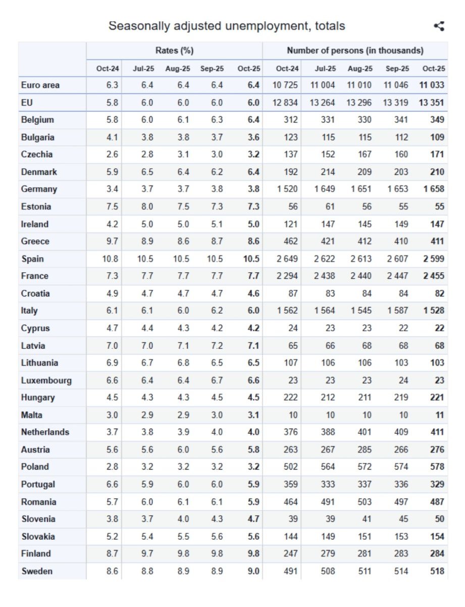 Безработица, октомври 2025 : 3.6%
