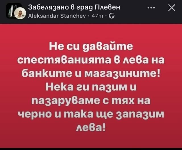 За това писах одеве, да. Със същия успех могат да си запазят по една банкнота и монета от всеки номинал и да ги "спасят", ама неее, черна борса с левове, утре може би в натура на разменни начала.