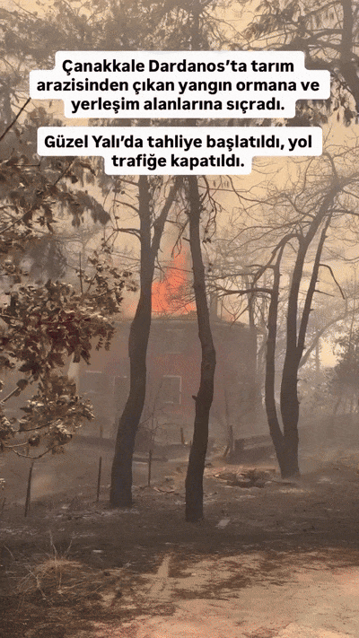 Пожар, който избухна в земеделска земя в Дарданос, Чанаккале, се разпространи в гори и жилищни райони. В Гюзел Ялъ бяха започнати евакуации, а пътят беше затворен за движение.