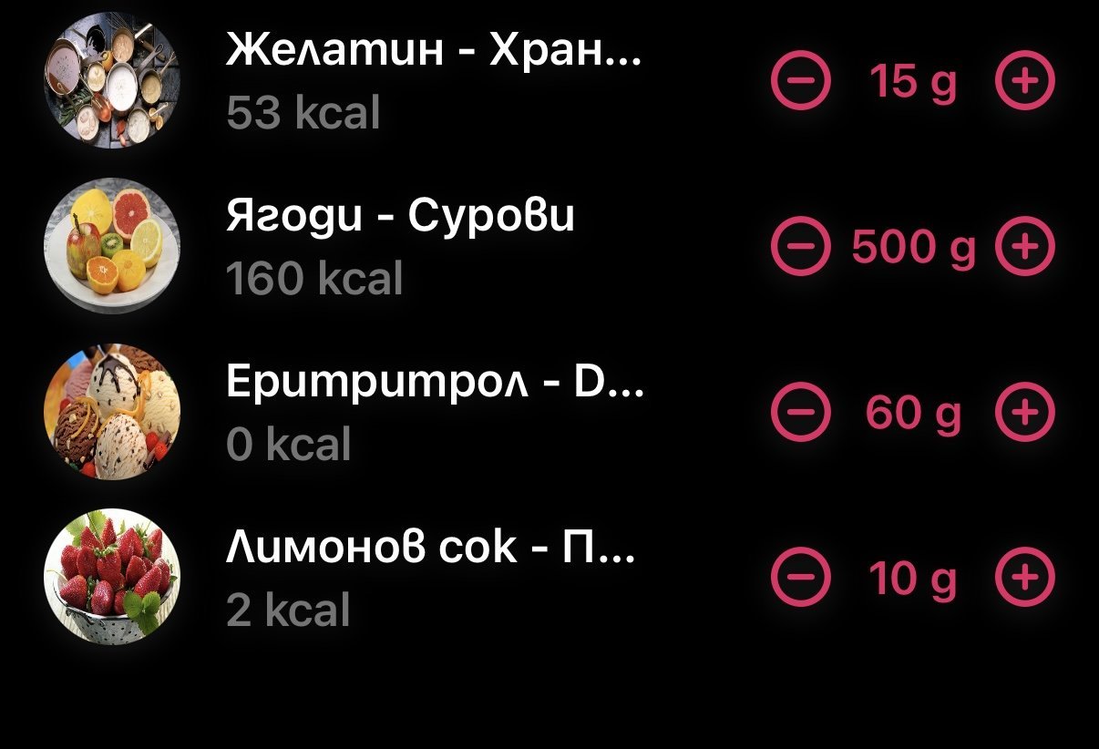 Сладкото като в него са 10гр желатин, а в крема са 5