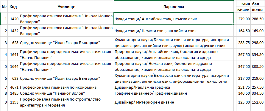 Качвам статистика за паралелките, които сме кандидатствали във Варна.
