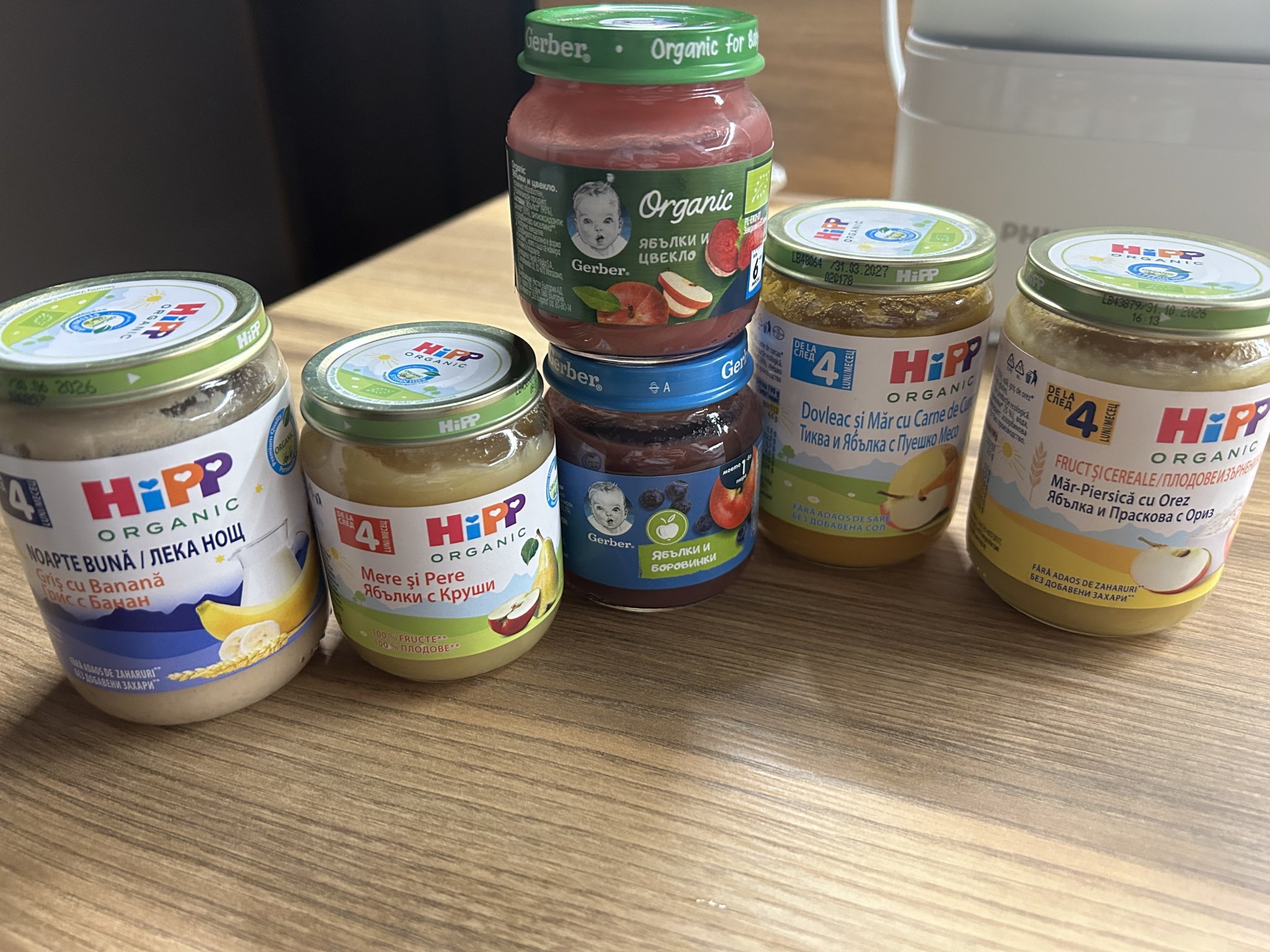 Вчера купих безмлечна оризова и царевична на Хип. Ще пробвам по схемата на EL, днес следобед ще му направя, мисля първо чиста да му предложа. Взех и разни плодови пюрета, май наблегнах без да искам на ябълката 🤷🏻♀