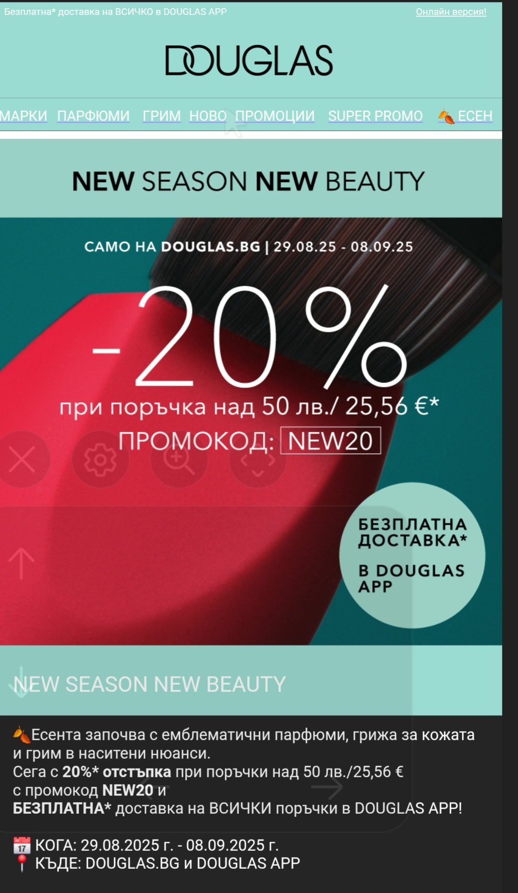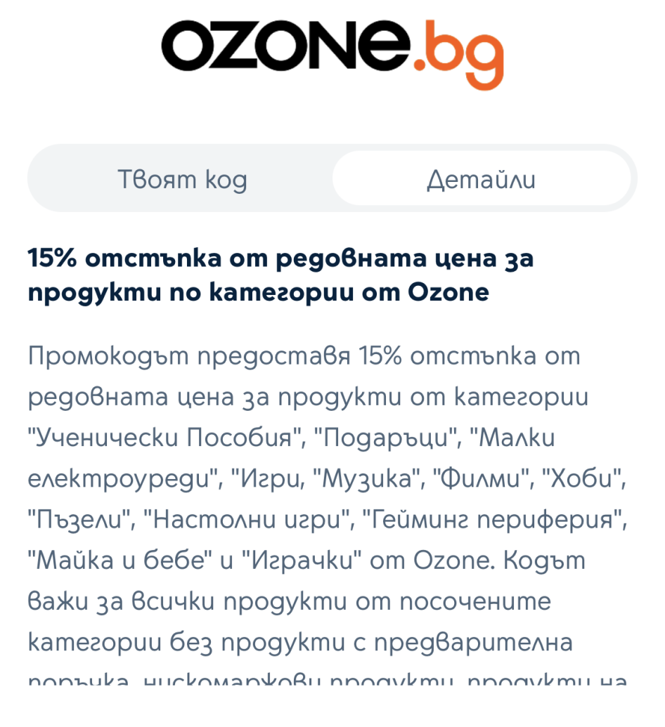 кодът е валиден до 2025-09-02 и се прилага само за продукти на редовна цена