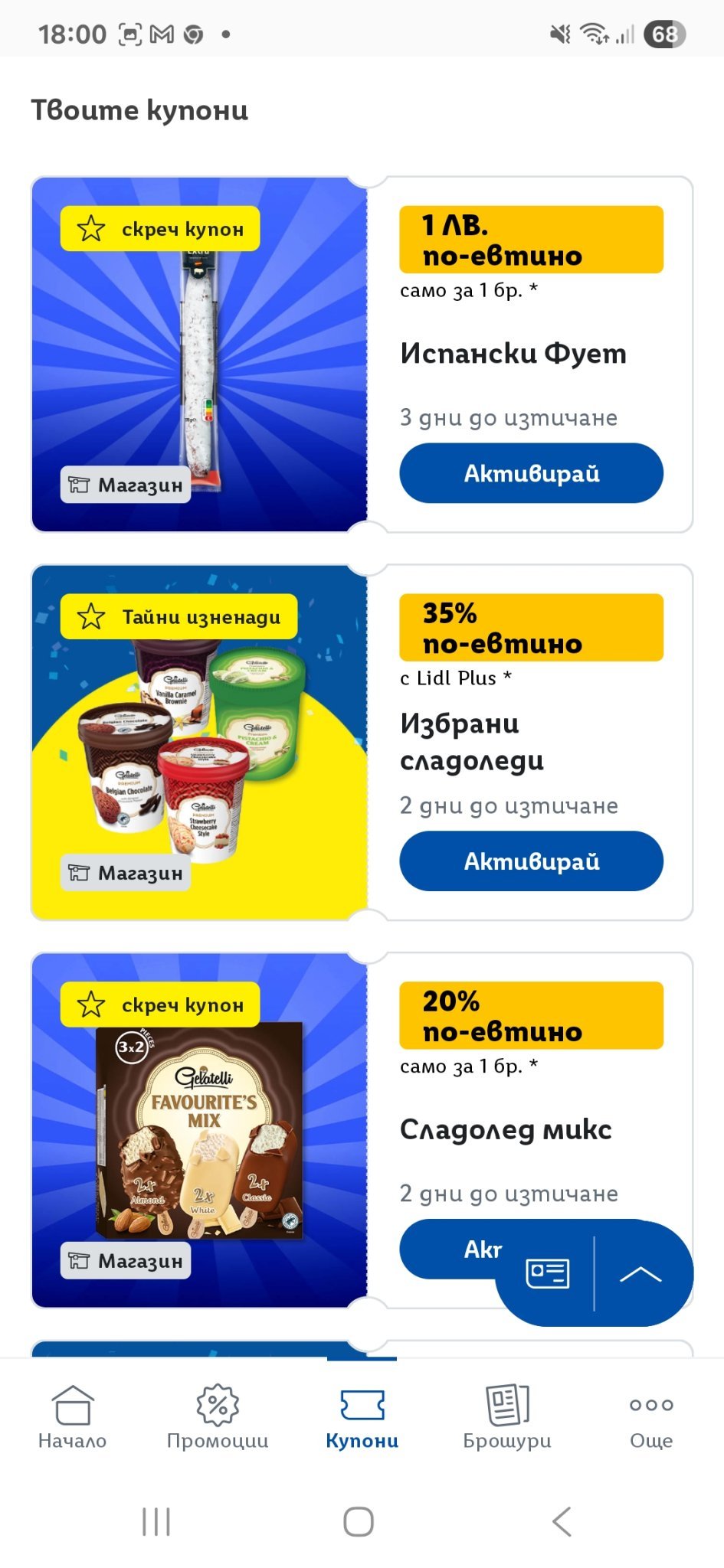 Магазина Лидл до гарата във Враца е в ремонт до края на другия месец. Имам купон за -5лв при покупка над 50лв за другия, които е много отдалечен и няма да го посещавам, ако има желаещи за купона да пишат. Давам и купона за сладоледите от днес.