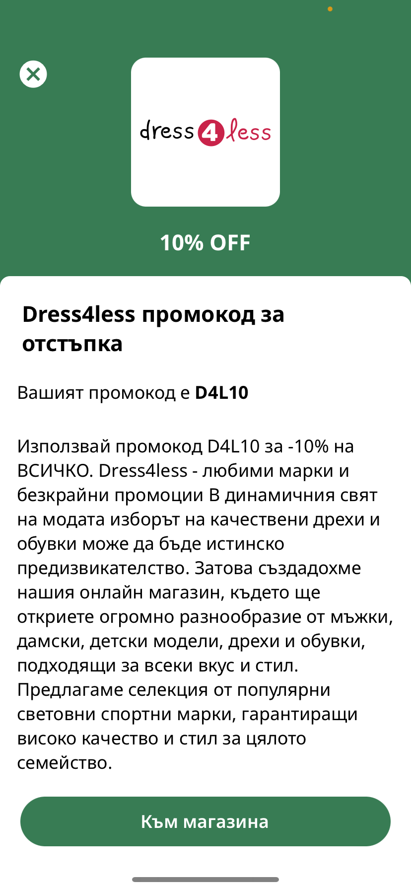 КОД ЗА ОТСТЪПКА 10 % за онлайн пазаруване