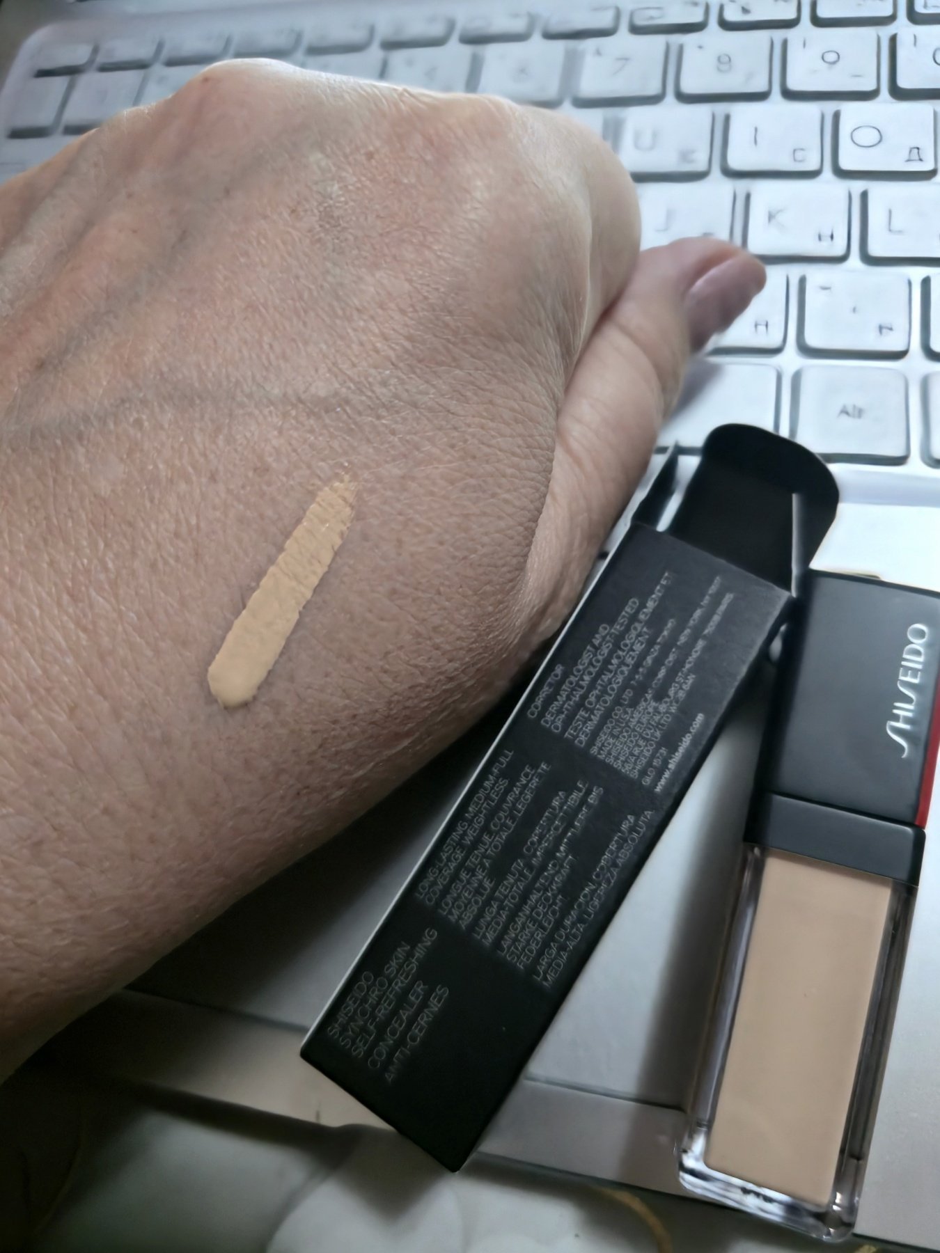 Вчера си гледах клипчета в ТикТок и попаднах на едно, в което гримьорката Али Андреа, която много харесвам и следвам, показа четирите и най-любими и най-много ползвани коректори, единия беше този, а другия посочения по-горе на Hourglass. Другите два не ги запомних, ето клипчето. Но имам фдт Shiseido Sinchro Skin Radiant Lifting, който също харесвам.
