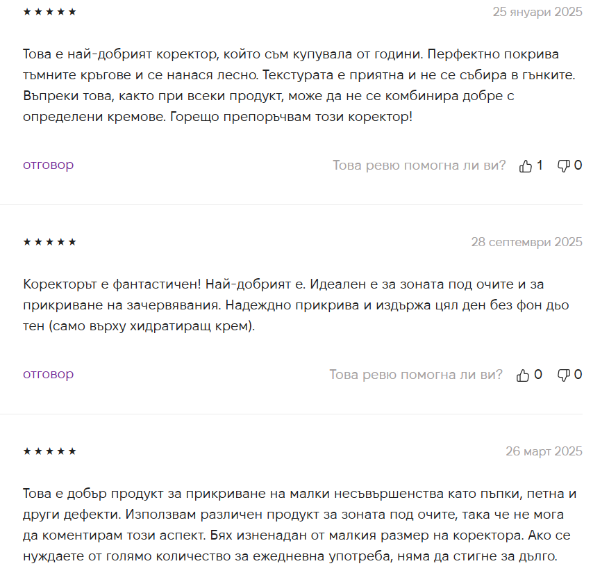 Може би от тези по-евтините ББ кремчета, само лилавия на Миша ми харесва наистина. Доста хубаво покрива и не се събира и лъщи.