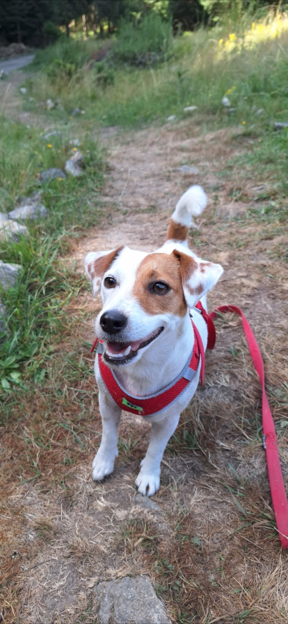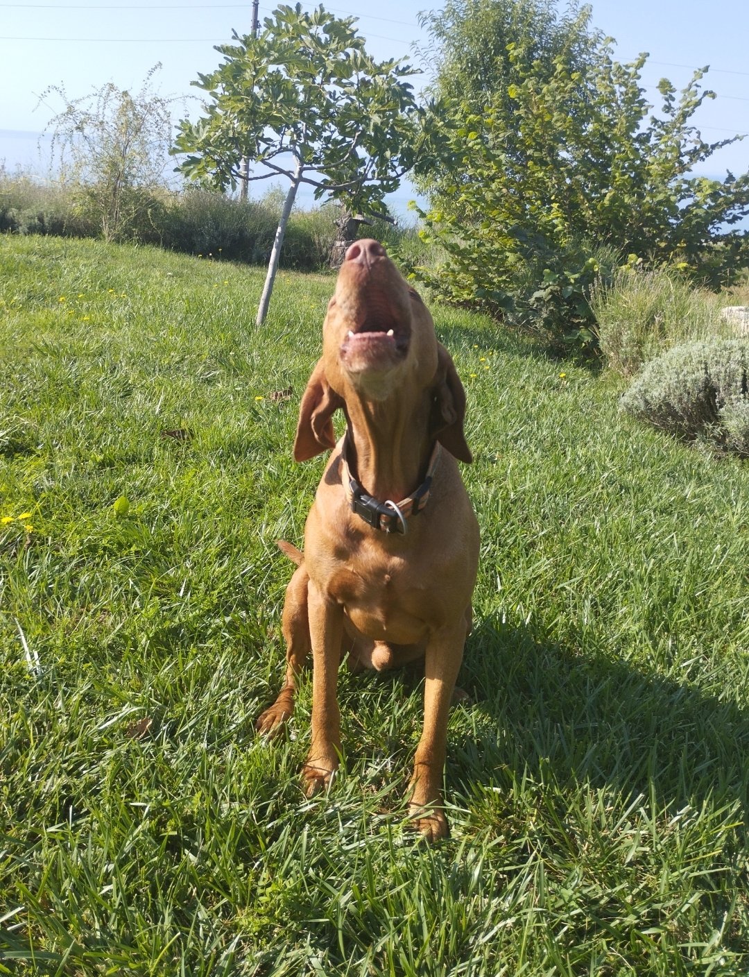 Купих повод с душач за Гука. Дано да успея да я разхождам нормално, че да изразходва тази негативна енергия. Нервачка, а Чочо е голяма, рошава топка спокойствие.