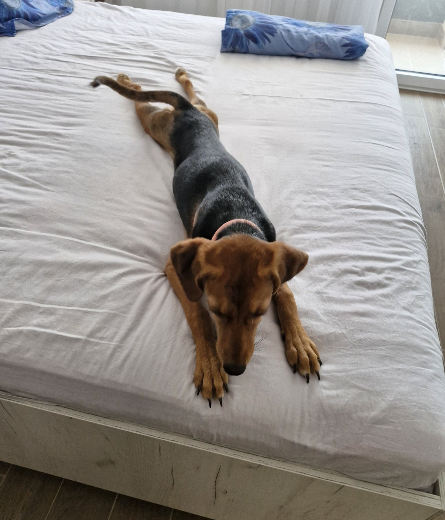 И аз Арда я разпознавам по лапките, Саско е  с бели чорапи. Зара като беше малка и слабичка, по същия начин лежеше по корем като жабка. Simple Smile