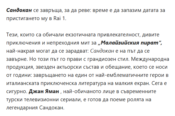съживява легендарния Сандокан - Тигърът на Малайзия!