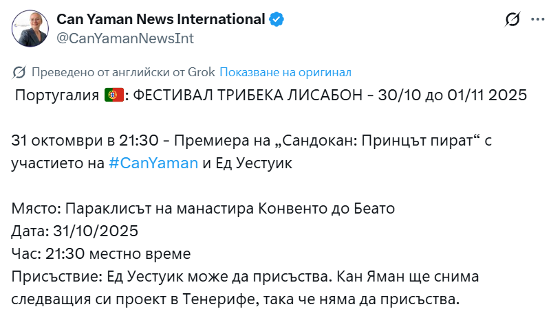 Доста натоварена програма очаква Джан, но нека! Много се радвам за него, че не остава без проекти. Чудя се в Бразилия на какъв език ще снима нашият полиглот...