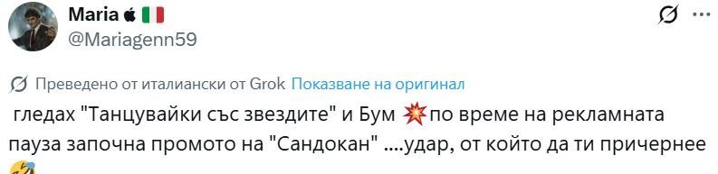 Да, същото е като публикуваното в СМ -> https://x.com/__laurina_/status/1972020609136971946 , но видяно по телевизията, по Рай1 в праймтайма, има съвсем различен ефект, невъзможно е да опиша/да предам усещането..Nature Zap