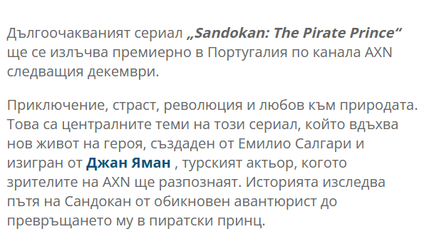 В Португалия ще излъчат Сандокан също през декември! Страхотен коледен подарък! Heart Eyes