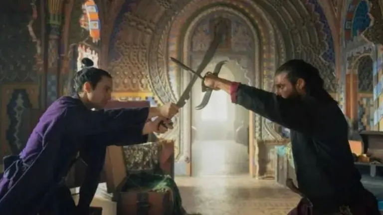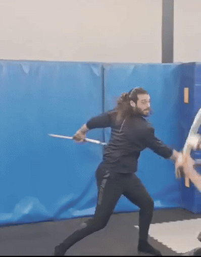 Can Yaman репетира една от бойните сцени за Sandokan.