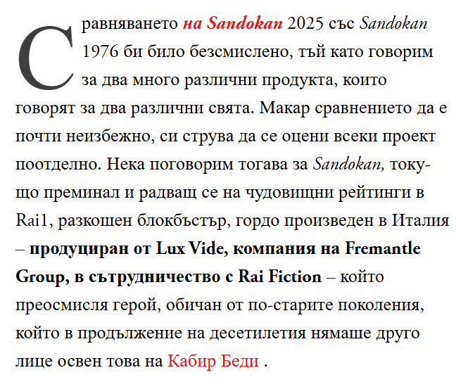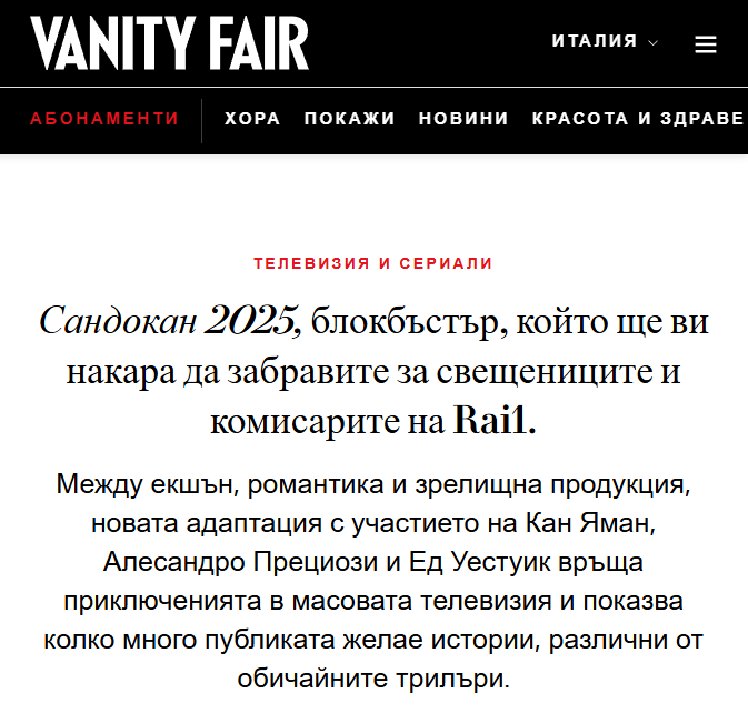 Статия от Vanity Fair за Сандокан "радващ се на чудовищни ​​рейтинги" Sunglasses