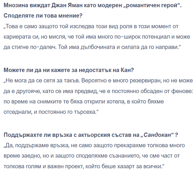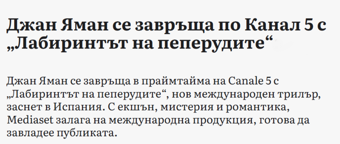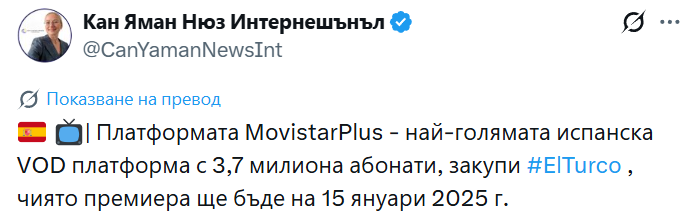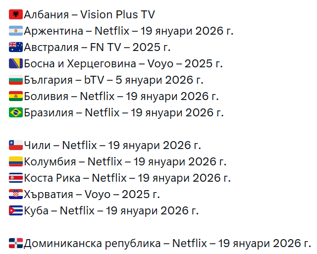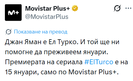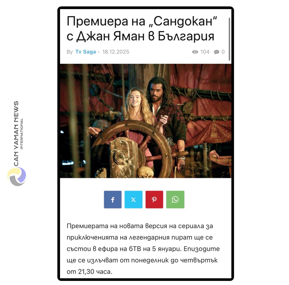 Аз я прочетох още вчера сутринта във вестник ТВ Сага,който излиза всеки четвъртък.Видях го на стилажа на един павилион за вестници,кафе и др.дребни неща.На 1-ва стр.имаше снимка на Еда Едже и заглавие че се снима в ром.комедия.Аз нали я гледах в сериали и реших да го купя.И какво да видя вътре имаше статия със заглавие:Феноменален успех на ''Сандокан с Джан Яман''.Пишеше това,което вече знаем и накрая,че ще се излъчва у нас от 05.01.2026 г.!Потърсих новината в Теленовелас тъй като там пишат за новите сериали,които наближават да пускат,но нямаше нищо.Мислех днес сутринта за всеки случай да ви я кажа!